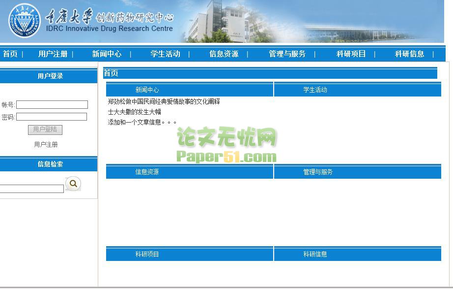 系统功能需求 本课题是一个重庆大学创新药物研究中心管理系统,课题的研究中心是实现文章信息的发布和展示功能。具体应该包括下面几个方面: 1、 系统必须严格按照角色来划分系统的功能,管理员实现对相关资讯的管理,普通会员可以参与文章的评论,游客只能查看文章信息。 2、 根据重庆大学创新药物研究中心管理系统的特点,开发一个流程化,系统化的重庆大学创新药物研究中心管理系统,并初步形成一个相对完整的资讯发布管理体系。 3、 系统要能实现系统既定的功能模块。。 前台模块主要包括的功能有用户注册,用户登录,资讯类别查看,资讯搜索,资讯列表,资讯内容显示,资讯评论信息,用户中心,友情链接显示等功能模块。其中系统中的用户信息包括几种不同的权限用户: 后台模块是系统的管理模块主要对整个系统的功能和基本信息进行管理的功能模块,后台模块主要实现的功能包括: 用户信息管理:包括对用户信息的查看,修改和删除用户的管理。 资讯类别管理:对资讯的类别进行添加,修改和删除的功能模块。 相关资讯管理:包括发布相关资讯,修改相关资讯,删除相关资讯等功能此为资讯还有点击次数,是否置顶,是否推荐等信息字段来在前台控制相关资讯的显示。 paper51.com 管理员账号信息管理:实现对使用后台的用户信息的管理,包括添加账号信息,修改账号信息,删除账号信息。 登录密码修改功能:实现对当前登录用户的登录密码的修改操作。 ![]() ![]() |