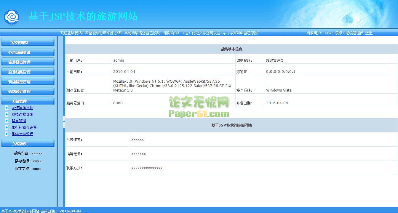 本系统是针对中国北京的旅游景点等开发的一个系统,是一个要求切实可行的系统,用于客户了解北京的景点、娱乐、餐饮等服务。同时提供定制化的服务。 系统应具有以下基本功能: 1、系统用户的登录、退出; 2、系统分为四个模块:用户功能模块、信息浏览模块、基础信息管理模块、评论功能模块。 2.1用户功能模块 用户模块主要功能包括新用户注册、老用户登录。同时管理员对用户进行管理。 (1) 用户注册。在用户注册时,自动添加用户注册时间,系统默认该用户权限为3,只能浏览,检索旅游信息。注册成功后调用登录模块。 (2) 用户登录。已注册用户在访问本网吧站,可以先登录到系统。登录时需要输入用户名密码,通过系统验证成功后方可进行相关操作。用户登录后调用信息浏览、信息检索、留言模块。 (3) 查看用户基本信息,主要是用户查看自己注册的基本信息,包含用户权限以及自己参加的旅游团,以及旅游团的人数。 2.2信息浏览模块 通过信息浏览功能用户可以查看所有的旅游信息、旅游团、线路景点、评论等。其中包括公司的介绍、旅游线路浏览、旅游景点浏览、旅游团浏览。同时重点突出公司的介绍以及旅游线路。同时用户还可以在这个模块查询上述信息,既可以模糊查询又可以精确查询。 paper51.com (1) 公司介绍 主要突出公司的企业文化,企业的特色等。 (2) 旅游线路浏览 分为常规旅游线路和定制化旅游线路。常规线路只一般旅行社走的线路。定制化线路可以根据用户选择学校、人文、自然、科技景点一日游制定一定的方案供客户参考。 (3) 旅游景点浏览 包含不同的方面,学校景点、人文景点、自然风光、科技景点等,满足不同人的不同的需要。 (4) 旅游团浏览 包含常规旅游线路团和定制化旅游线路团。用户可以根据自己的需求进行浏览,查看各个旅行团已经报名的人数,以及队员名字。也可以报名旅行团和查看自己已经报名的旅行团信息。 2.3基础信息管理模块 主要针对管理员对公司介绍、旅游线路浏览、旅游景点浏览、旅游团浏览进行查看,添加和修改。 2.4评论模块 通过评论模块,网站浏览者可以对旅游线路和景点进行评论,注册用户会显示自己的用户名,非注册浏览者用户名将是空白的,不显示评论者的用户名。同时管理员可以进行留言的管理。 预期目标: 系统界面美观,操作简单。重点突出定制化旅游线路。满足不同用户不同的需求。给不同用户提供定制化的旅游线路。为未来市场的特色旅游打下基础。 copyright paper51.com ![]() ![]() ![]() |