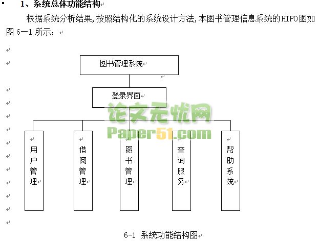 图书管理系统主要是完成图书管理员对图书的管理(增加新书,删除旧书,并修改等的图书编辑);图书管理员对读者借还书的统计(图书的在库数目和还日期的统计)和管理;读者和管理员对图书信息和读者信息的查询;当查到所需信息时,打印出相应的信息报表等工作。 内容来自www.paper51.com